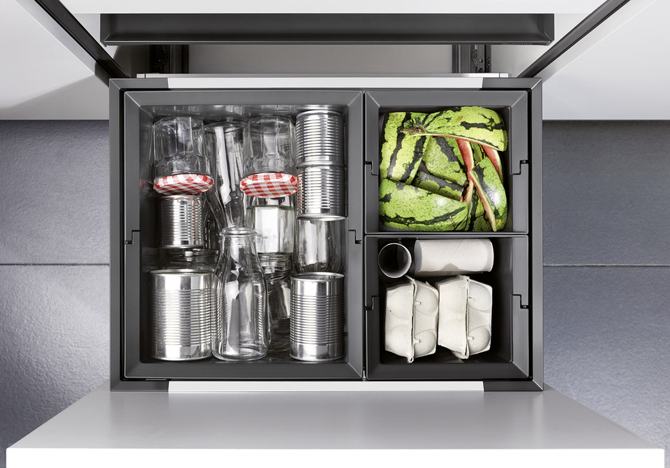 - Diverse gescheiden afvalinzamelsystemen en bergruimte door flexibele combinaties van afvalemmers