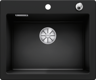 - Royale, diepe enkele spoelbak met doorlopende kraanrichel